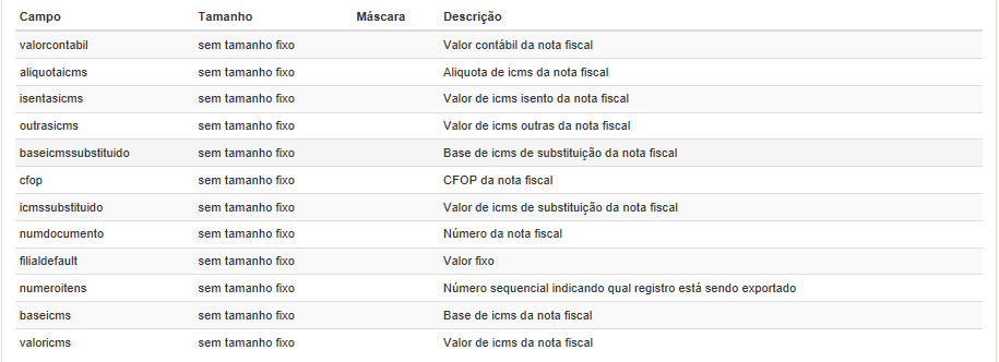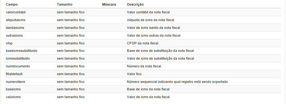 Exportação: Itens Retorno de Movimentação de Entrada e Saída