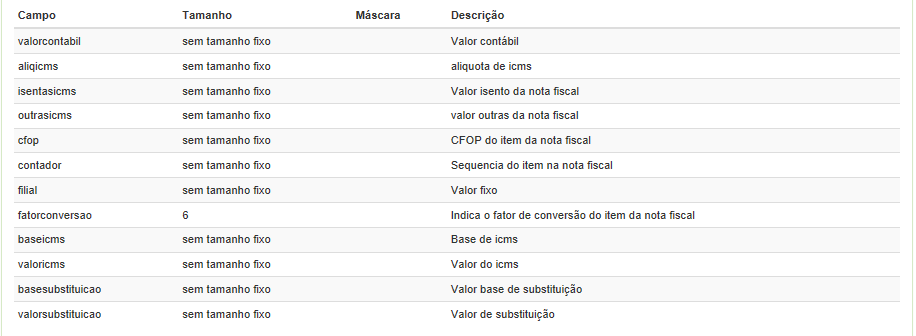 Modelo Itens Nota Fiscal Retorno de Armazenagem Completo