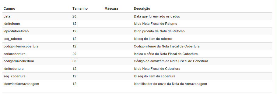 Modelo Cabeçalho Nota Fiscal de Retorno de Armazenagem