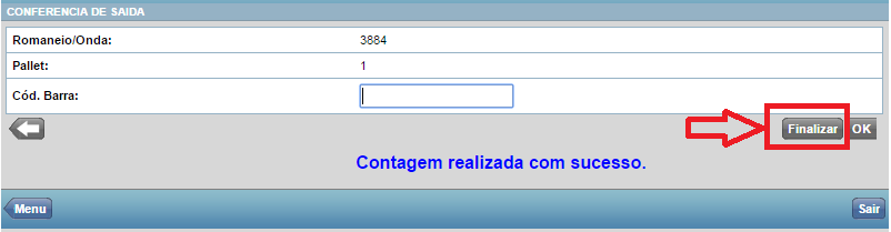 Após finalizar a separação acessar o menu do coletor CONFERÊNCIA DE SAÍDA
