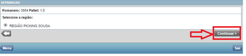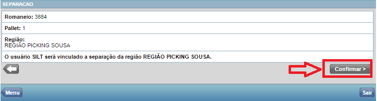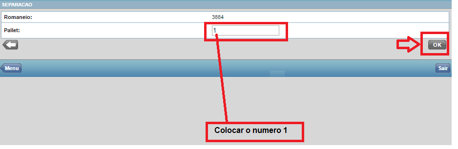 Após digitar o número da separação, informar o número 1 para o pallet, e clicar em OK.