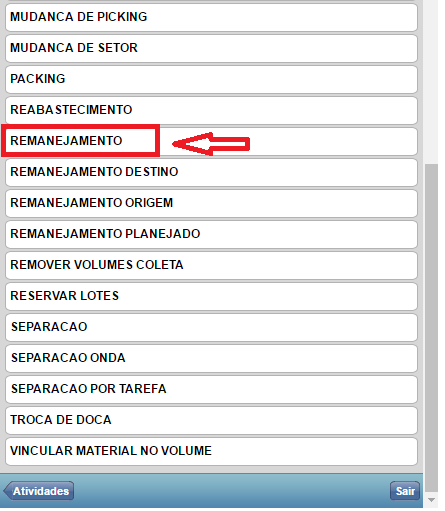 Acessar o Coletor de Dados, menu REMANEJAMENTOPLANEJADO.