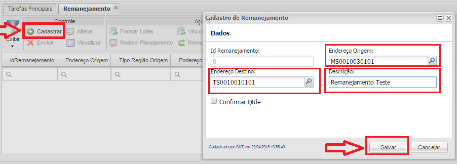 - ENDEREÇODESTINO (Novo Endereço onde o produto será armazenado).