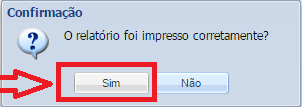 Após impressão com sucesso clicar no botão SIM conforme mostrado na imagem abaixo: