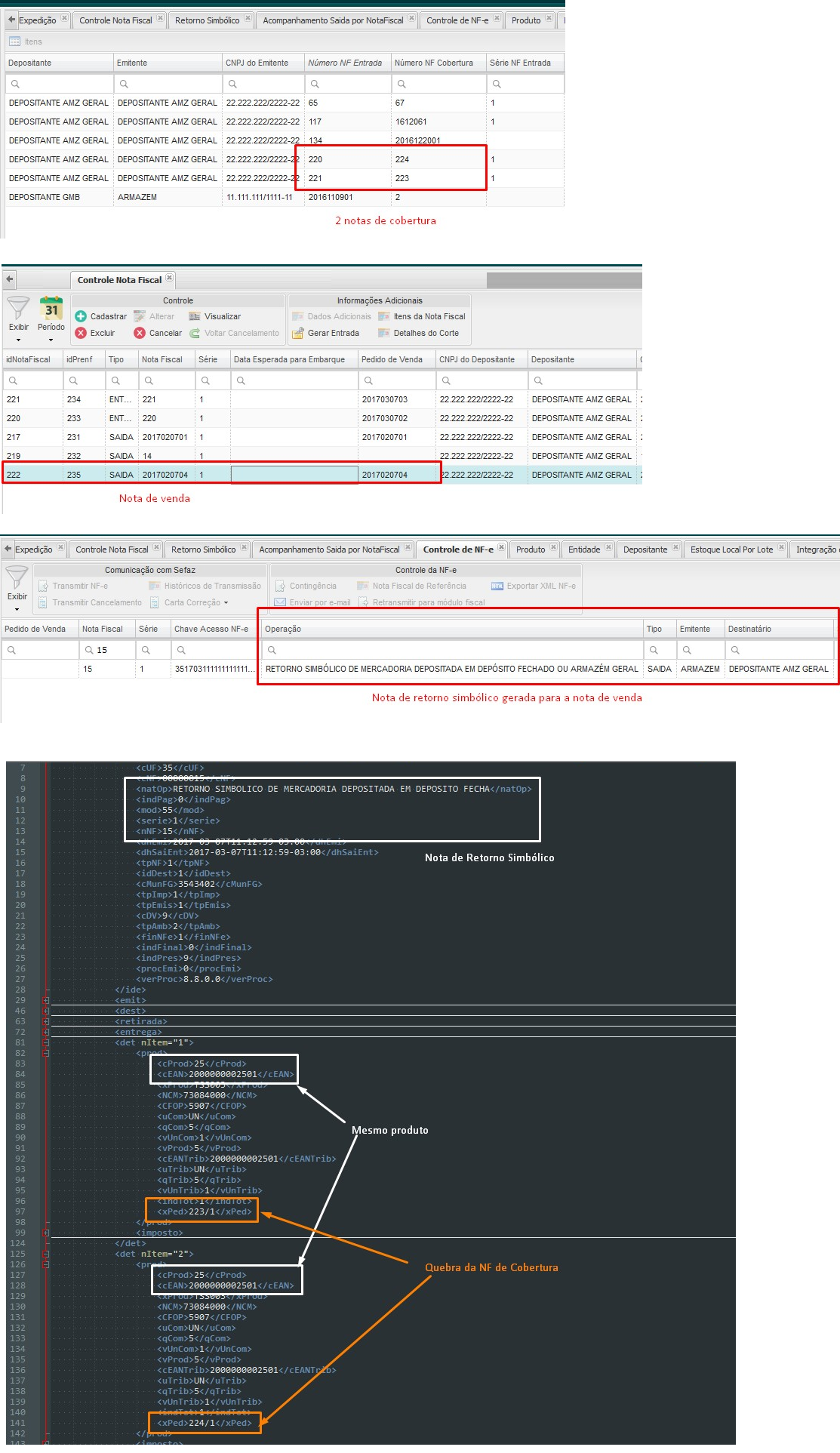 Desde a versão 8.8.0.0, foi adequada a rotina de Geração de Retorno Simbólico para acrescentar a tag <xPed> com o número da Nota Fiscal a de Cobertura e na Geração do XML.