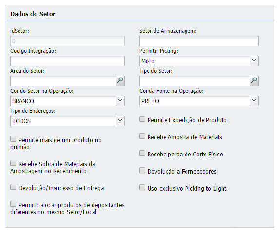 Quando o tipo de endereço for Pulmão, o parâmetro Permitir Picking ficará setado para Misto e não será editável.
