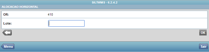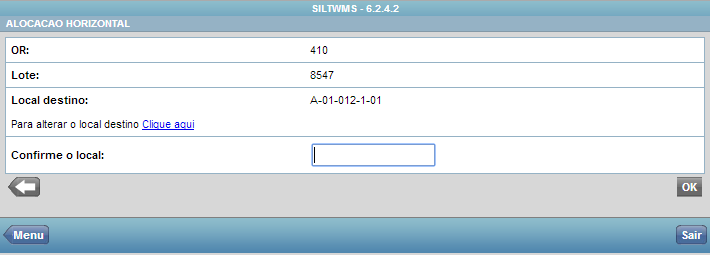 O sistema solicitará o número da OR (ordem de recebimento), o lote que constará na Etiqueta de Alocação ou no relatório de Mapa de Alocação, tendo a possibilidade de alterar o endereço de alocação.