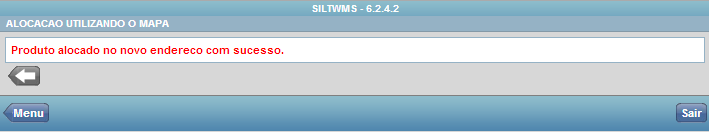 O sistema abrirá campo para digitar novo local de armazenagem. Onde será validado local x produto x depositante x cubagem, onde ao clicar no botão OK, o sistema apresentará a mensagem “Produto alocado no novo endereço com sucesso”.