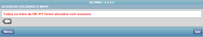 Após informar todos os lotes da OR,o sistema apresenta a mensagem “Todos os lotes da OR 999 foram alocados com sucesso”.