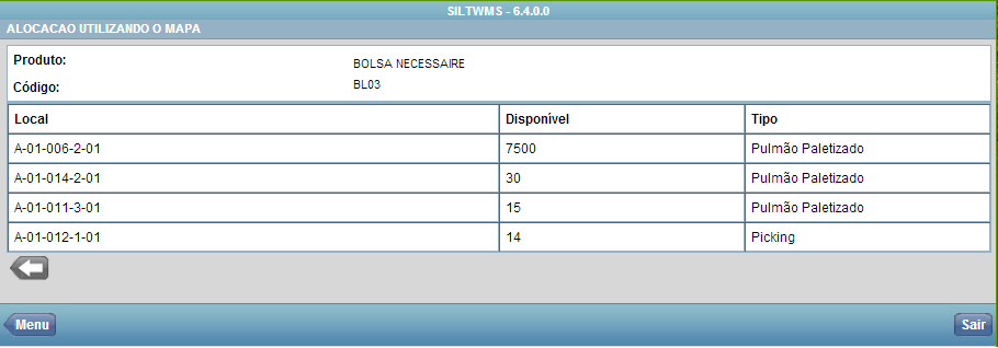 O sistema permitirá alocar os produtos no local onde o sistema gerou o Mapa de Alocação ou de clicar no botão “Alterar Endereço” para mudar o local de alocação.