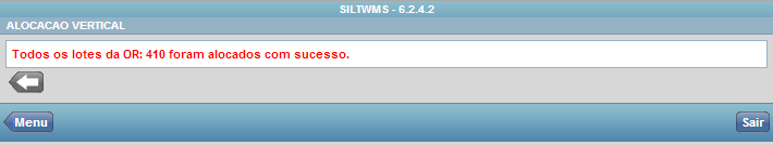 Após informar que todos lotes da OR passaram pelo menu Alocação Horizontal,o sistema apresenta a mensagem “Todos os lotes da OR 999 foram alocados com sucesso”.