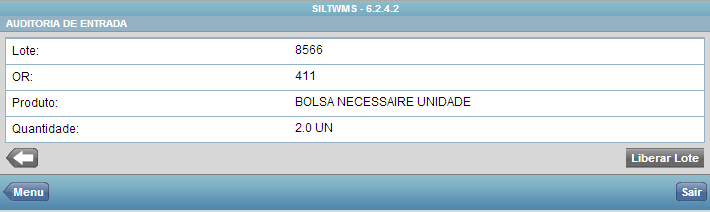 Exibe os dados do lote. Se clicar no botão “Liberar Lote” o sistema apresentará mensagem que o lote foi liberado.