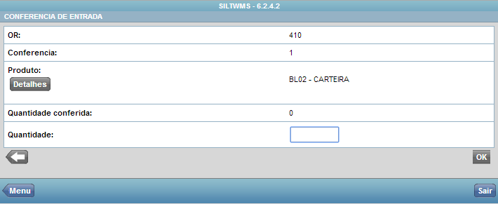 Nesta tela, o sistema solicitará a quantidade de produtos que estão em conferência.