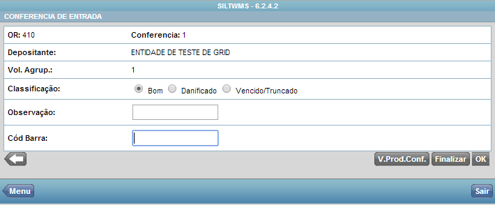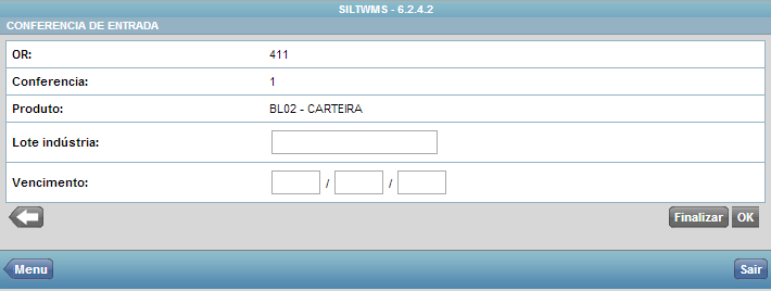 - Somente será validado Data de Fabricação e /ou Vencimento se o Produto x Depositante estiver configurado para coletá-las, caso contrário somente validar as quantidades de cada Lote Indústria.