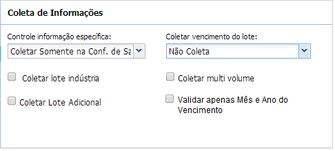 Se marcado um dos parâmetros abaixo, no Cadastro de Produto x Depositante, o Coletor de Dados solicitará Informação Específica e/ou Data de Vencimento e/ou Lote Indústria.