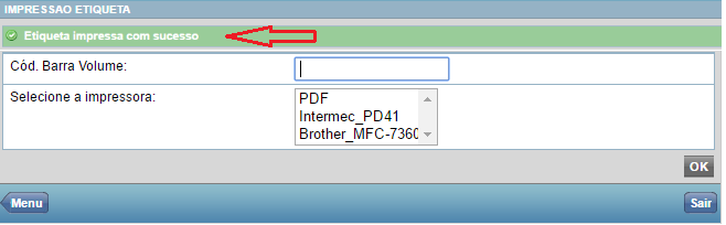 Esta funcionalidade será responsável em imprimir etiquetas a partir dos códigos de barras dos volumes, com escolha de uma impressora.