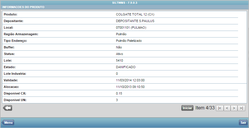 Na janela Estoque Analítico será possível visualizar informações importantes do produto em cada local do armazém, exibindo qual é o Tipo do Endereço, Status, Data de Validade, Quantidade Disponível em Caixa e Unitária. Com a possibilidade de avançar, retroagir, ir para o último registro ou para o primeiro registro, botões que estão localizados no canto inferior direito da tela.