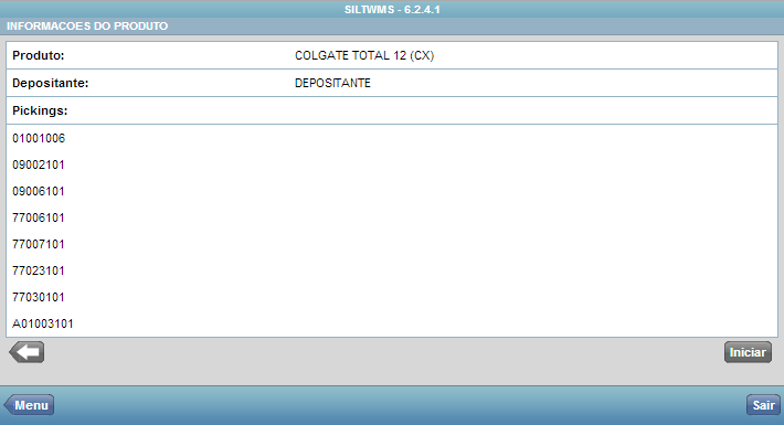 Foi realizada alteração na entrada da barra do produto na tela informações do produto no coletor de dados para que caso não encontre uma embalagem seja procurada uma regra de barra para depositante que atenda à barra informada. Caso exista mais de uma regra definida que atenda à barra informada será apresentada um lista com os depositantes detentores da regra que pode atender à barra informada.