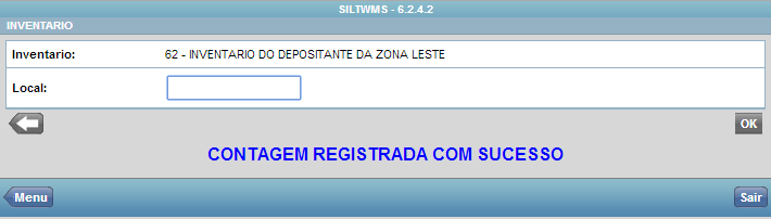 Ao clicar no botão “Finalizar” o sistema concluirá a conferência do endereço exibindo a mensagem “Contagem Registrada com Sucesso”