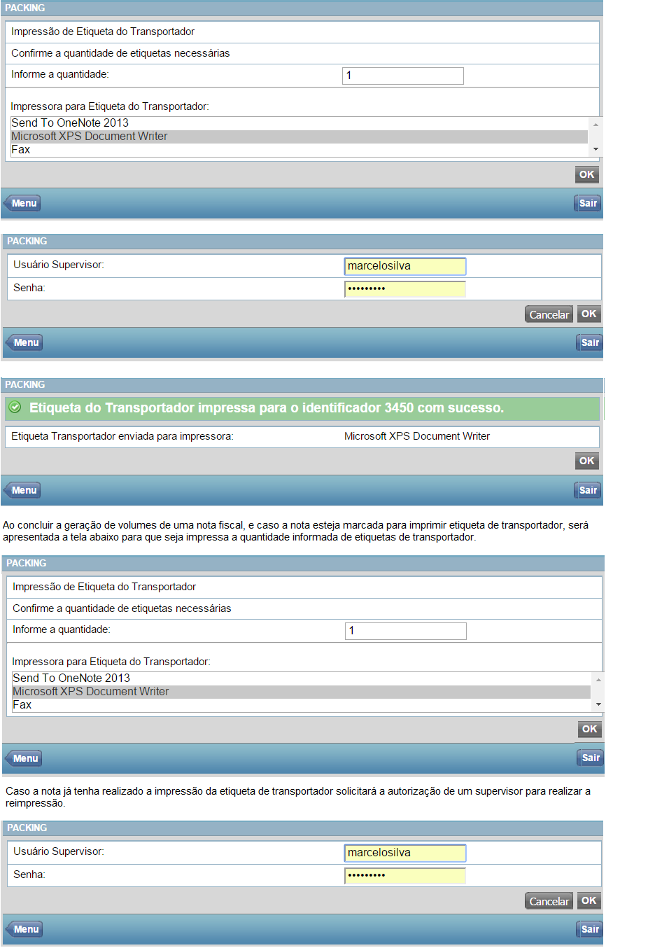 Ao clicar no botão “Re-Imprimir Etiqueta” será solicitado usuário e senha para nova impressão.