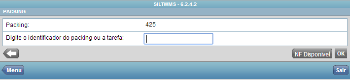 O sistema solicita o Identificador do Packing, que é o mesmo número do campo id Nota Fiscal.