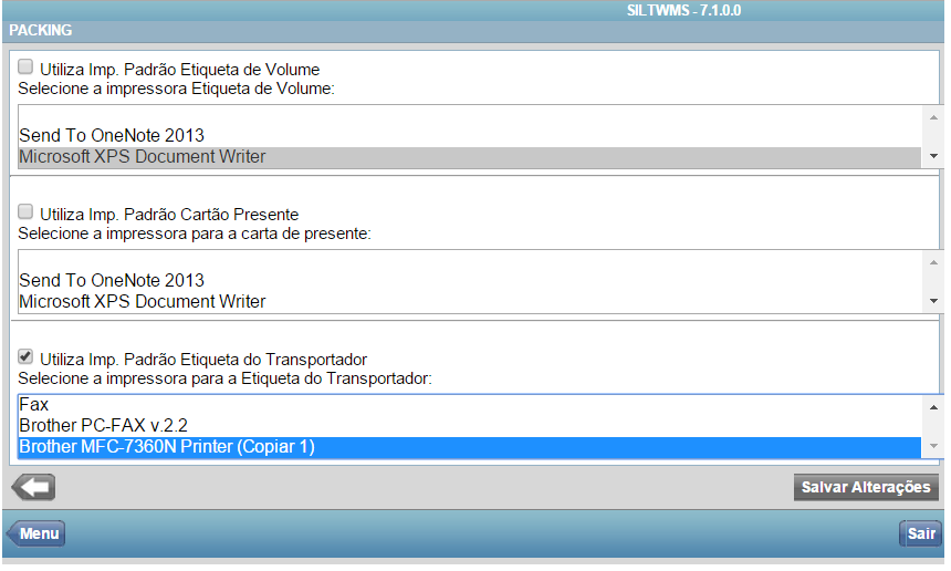 A partir da versão 7.2.0.0 foi inserido definição de Impressora Padrão da Etiqueta do Transportador.