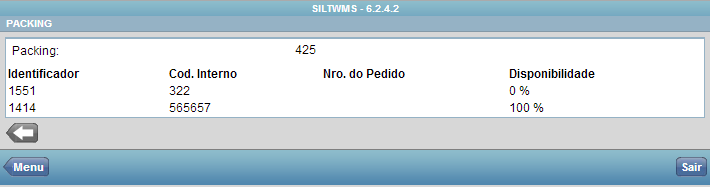 Se clicar no botão “NF Disponível” da tela anterior, o sistema apresentará todas as notas que serão direcionadas para a bancada/packing, a coluna “Disponibilidade” informa a porcentagem que foi separada, de 0 a 100, onde 100 informa que a separação foi concluída.