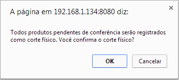 Ao clicar no botão “Corte Físico” o sistema exibirá mensagem abaixo, onde o usuário poderá aceitar ou declinar.