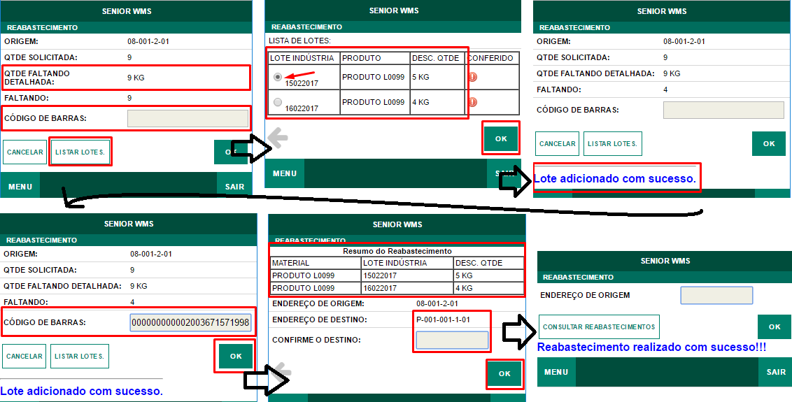 Após isso na tela do Coletor de Dados exibirá que o Reabastecimento foi realizado com sucesso !!!