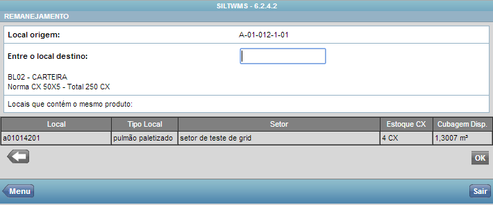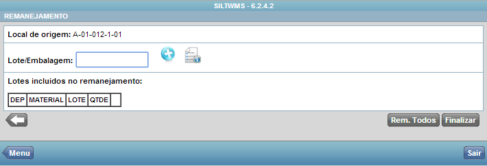 Esta funcionalidade é responsável por realizar o remanejamento de produtos via Coletor de Dados de um local origem para um local destino.