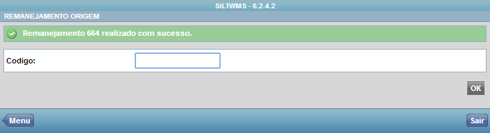 Será necessário informar o Código do Remanejamento previamente cadastrado.