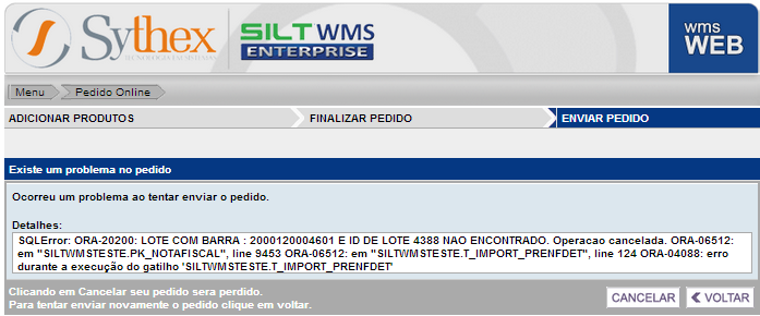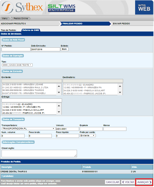 - O WMSWEB foi modificado para que o depositante com regime Armazém Geral não contribuinte ICMS consiga digitar um Pedido de Retorno GMB (Saída), para que seja importado e utilizado no processo de roteirização e expedição.