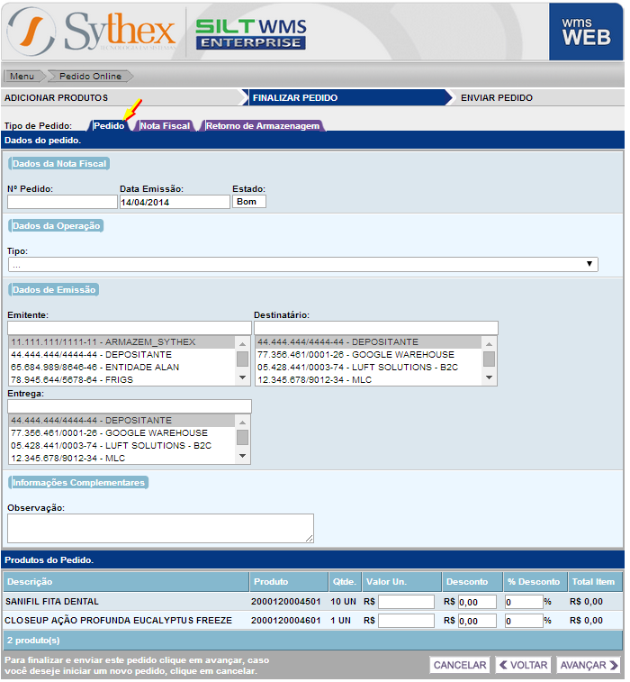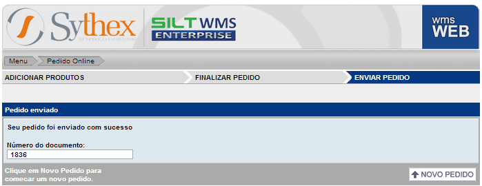 Se clicar no botão wwnovopedido.png, o sistema direcionará os menus para nova criação de Documentos de Saída.