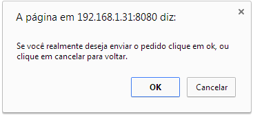 Exibirá janela, para uma segunda confirmação, faz-se necessário clicar no botão OK.