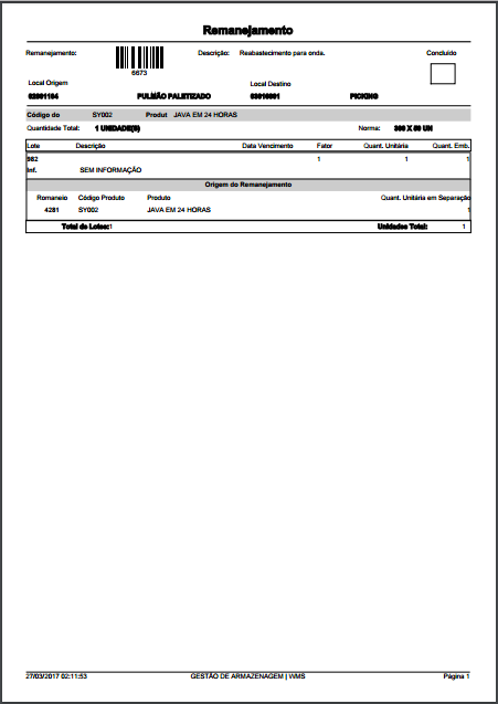 - Remanejamento pelo Coletor: mesmo imprimindo o relatório de remanejamento o sistema obriga os remanejar as embalagens pelo Coletor de Dados.