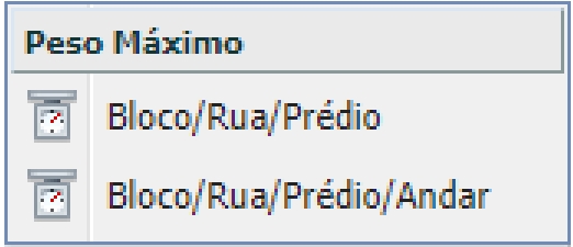 botão Peso Máximo > Bloco / Rua / Prédio / Andar