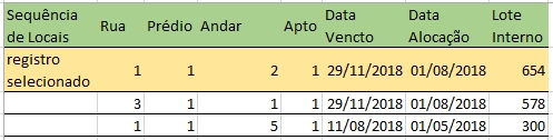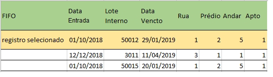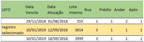 - Sequência de Locais: o sistema busca o local / endereço com lotes internos mais antigos, exatamente na sequência de filtros utilizados pelo sistema: