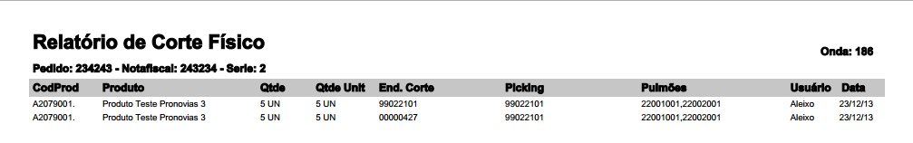 Quando a onda for de Expedição por Carga, o relatório exibe o número do palete no lugar da nota fiscal.