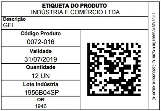 - Modelo GS1-128 – Etiqueta com as dimensões altura 70mm X largura 100mm.