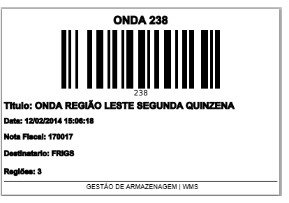 Para emitir esta etiqueta é necessário que o parâmetro Imprimir Etiqueta de Identificação ao Concluir a Separação esteja marcado na Configuração da Onda. Sua função é de imprimir etiqueta de identificação para a separação de uma onda. Juntamente com a escolha do modelo de etiquetas a partir do parâmetro Modelo de Etiqueta de Identificação de Separação.