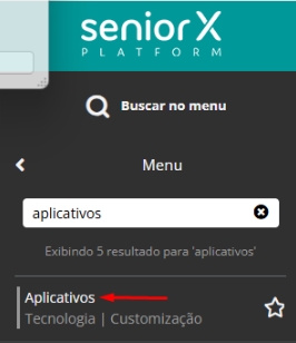 - Utilize a lupa de busca e digite Aplicativos ou menu Tecnologia > Customização.