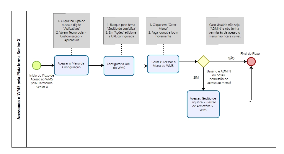 - O novo menu estará disponível no caminho: Gestão de Logística > Gestão de Armazéns > WMS