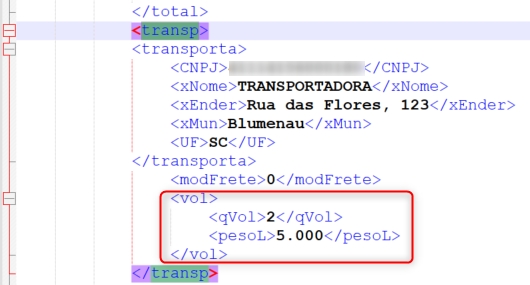 Observação: caso seja enviado um XML para integração, a quantidade de volume será avaliada pela tag qVol dentro da tag transp.![]()