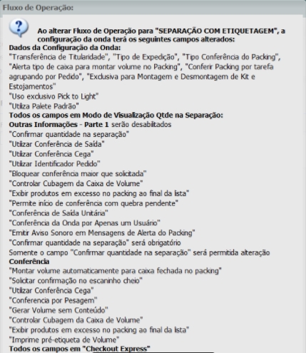 Crie/utilize uma configuração da onda que tenha o fluxo denominando "Fluxo operacional de etiquetagem".