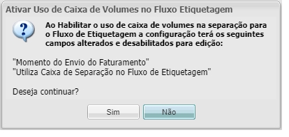 - Utiliza Caixa de Volume no Fluxo de Etiquetagem: define se irá informar a caixa de volume na separação durante o fluxo de etiquetagem: