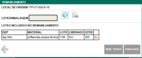 - Após a confirmação do endereço de destino, o remanejamento será concluído e o estoque será atualizado no sistema.