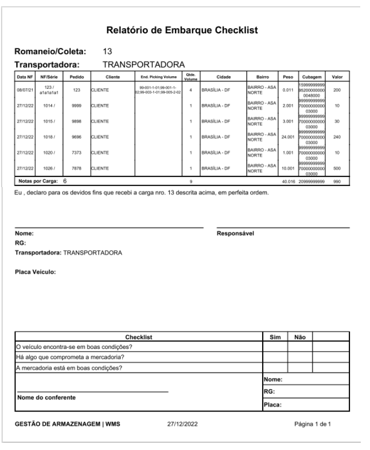 - Movimentação > Saída > Gerenciador de Coleta > botão Impressos > Embarque de Coleta Checklist