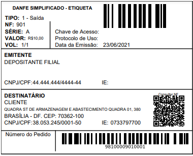 - As etiquetas imprimem quaisquer tipos de volumes gerados no pedido. O total de volumes também é mostrado.