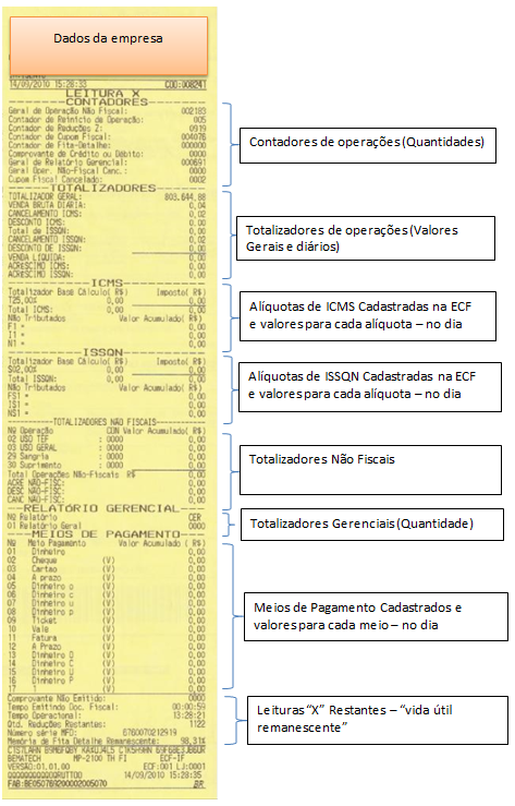 A Leitura X é o documento fiscal emitido pelo ECF (Emissor de Cupom Fiscal – Impressora Fiscal) que indica os valores acumulados de vendas nos contadores e totalizadores, sem que sejam zerados ou diminuídos esses valores. Pode ser emitido em qualquer hora do dia sem que afete o uso da Impressora Fiscal e várias vezes sem qualquer problema.