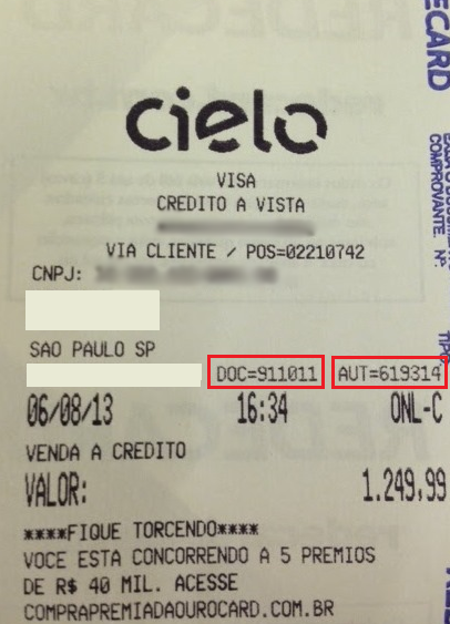 - Informe o código da autorização impressa no comprovante da venda POS conforme imagem do exemplo no começo desta página.